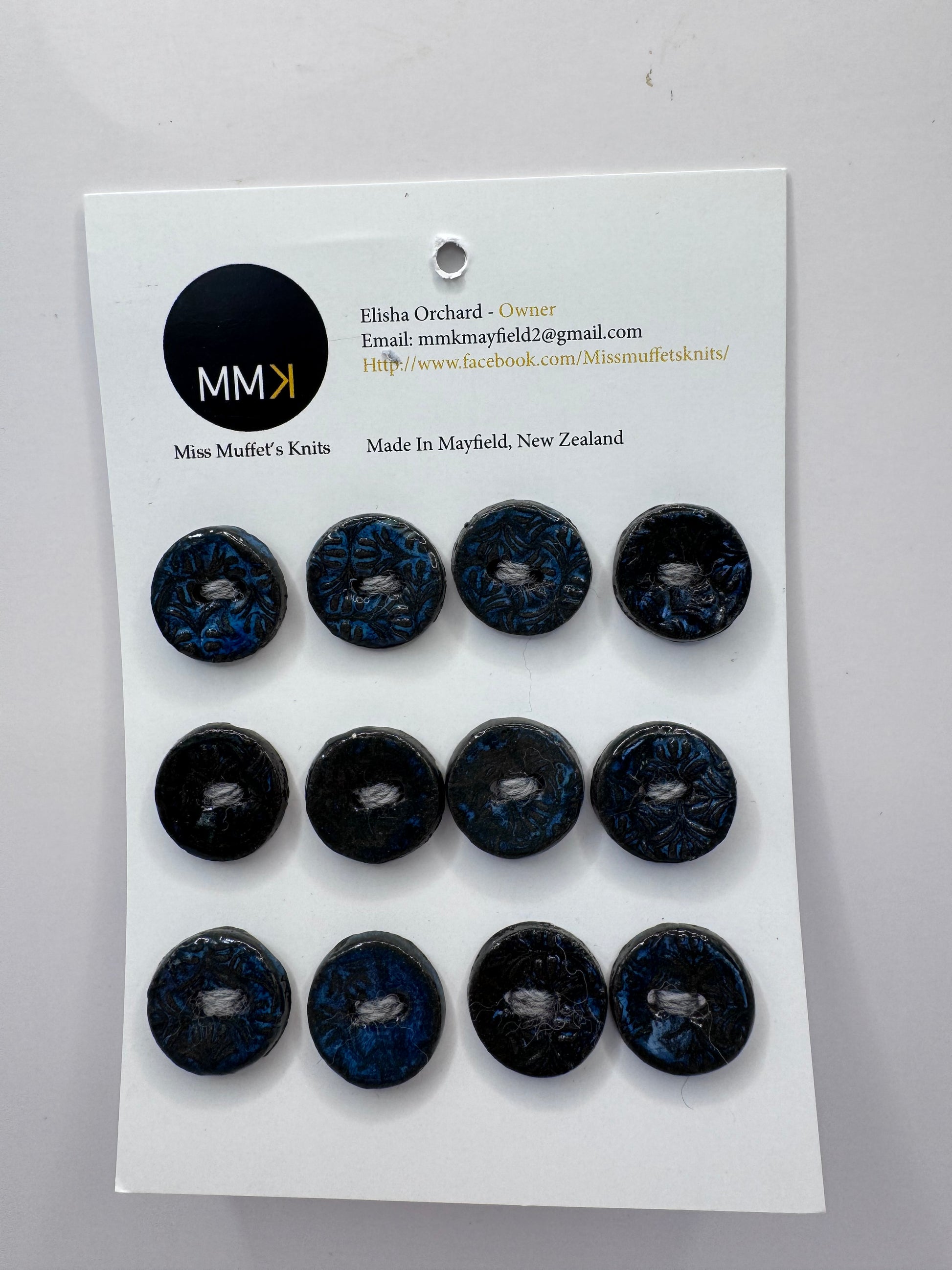 Miss Muffet's Knits: Ceramic Buttons 12 per sheet/1.5cm